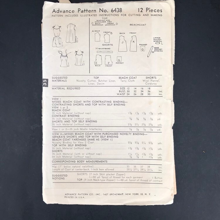 Vintage Advance Sewing Pattern 6438 1940s Beach Coat Shorts Etsy