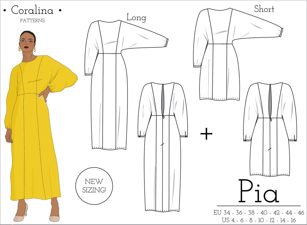 Kimono Sleeve Dress Pdf Sewing Pattern Sizes 4 16 Eu 34 46 Etsy